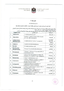 Page 40 - قرار مجلس الوزراء رقم 21 لسنة 2019 في شان تعديل بعض الجداول المرفقة بالقانون الاتحادي رقم 14 لسنة 1995 بشأن مكافحة المواد المخدرة والمؤثرات العقلية